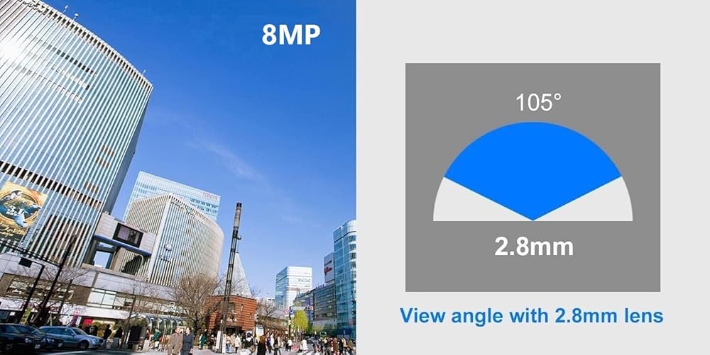 4K 8MP PoE IP Camera Outdoor 24/7 Color Night Vision 2.8mm Lens 100° Wide Angle, Visiable White LED Lights, H.265, Compatible with Uniview NVR, NDAA Compliant, Metal Casing Black