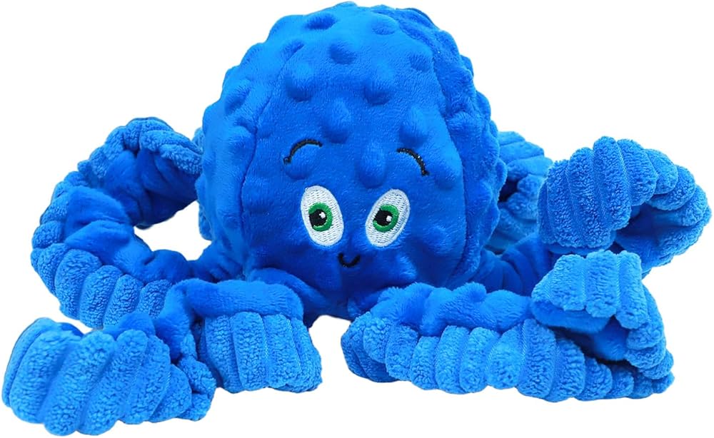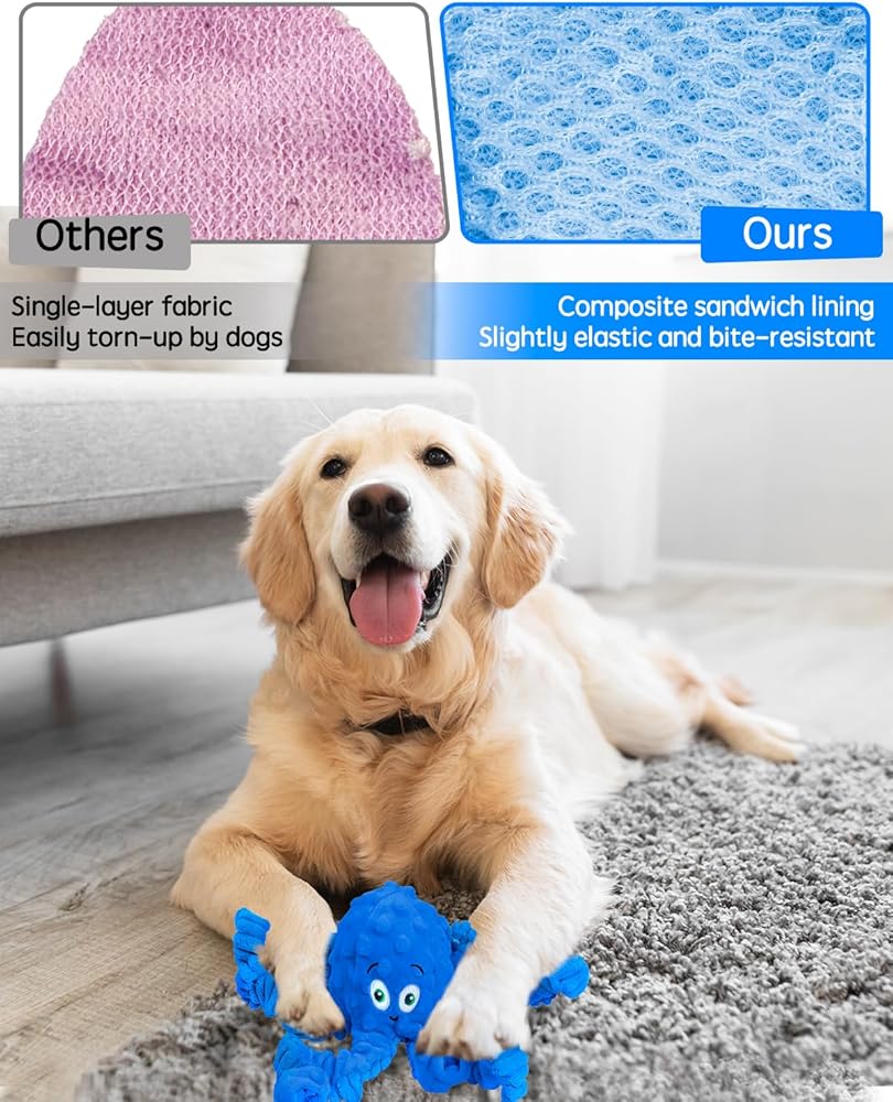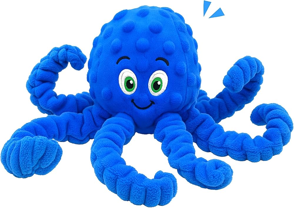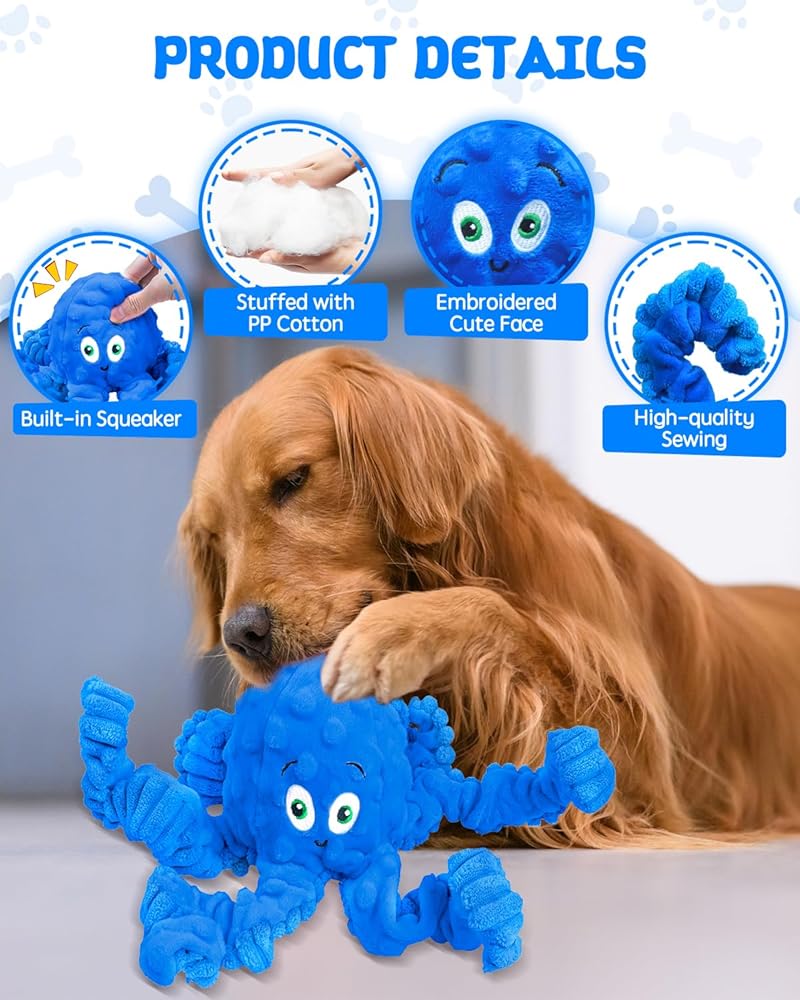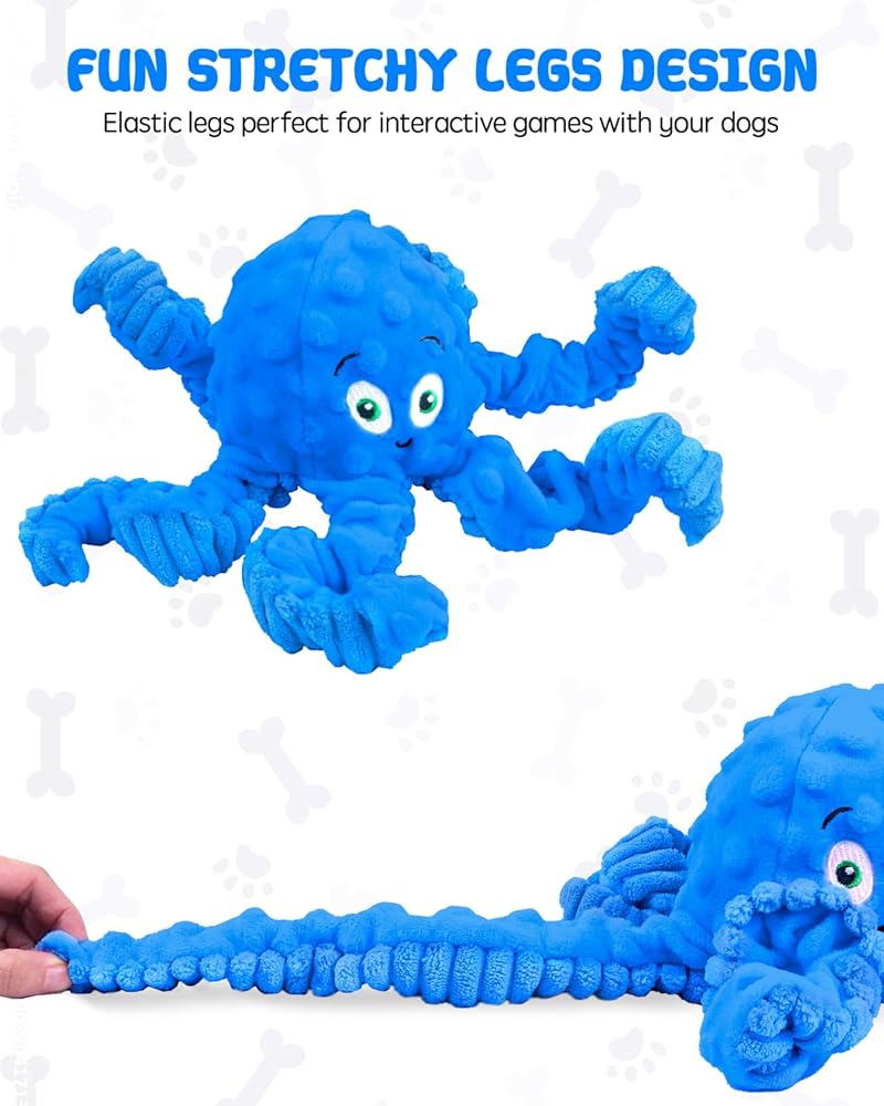 Squeaky Dog Toys, Interactive Plush Stuffed Octopus Tug of War Toy, Plush Crinkle Dog Chew Toys to Keep Them Busy, Funny Dog Toys for Small, Medium & Large Dogs - Blue