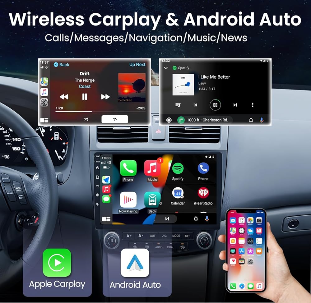 【Wireless Carplay & Android Auto】 Honda Accord car radio is compatible with wireless Carplay and Android Auto via Bluetooth connection, allowing easily access most IOS/Android phone functions like music, maps, messages, news and etc on a 10.1'' HD screen. Honda Accord Android car stereo also supports calling out Siri or Google voice assistant to make phone calls, freeing up your hands for safe driving.