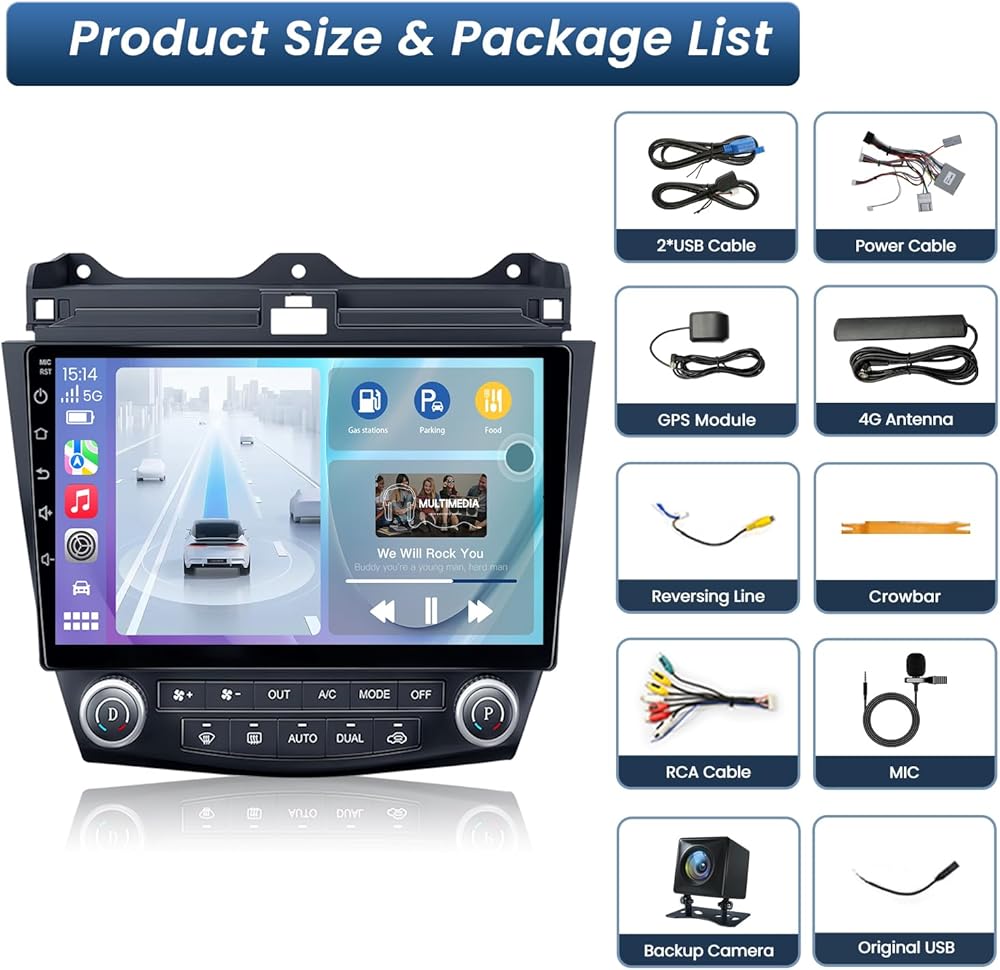 【Car Radio for Honda Accord 】This ultra thin radio is perfectly suitable for 2003 2004 2005 2006 2007 Honda Accord 7th radio and no need to purchase additional accessories.