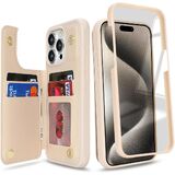 for iPhone 15 Plus Case with Screen Protector,for iPhone 15 Plus Wallet Case with Card Holder for Women Men,[Built-in Screen Protector] PU Leather Shockproof Phone Cover with Stand-Beige