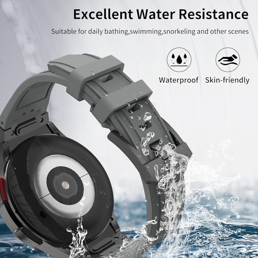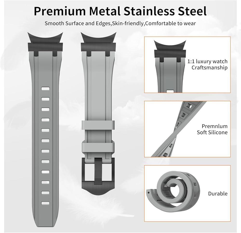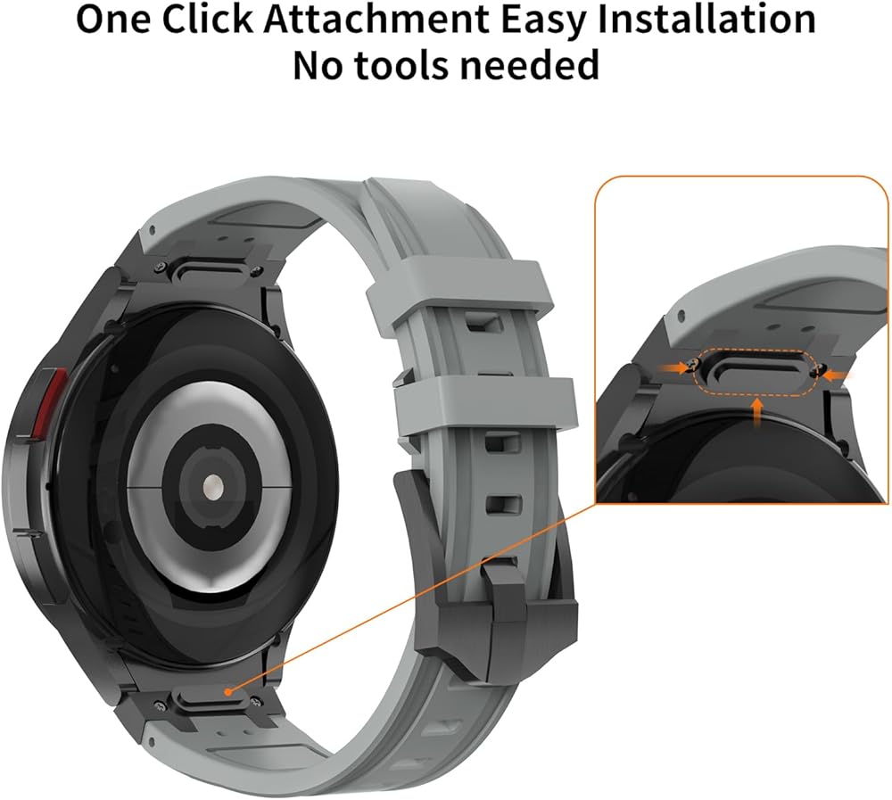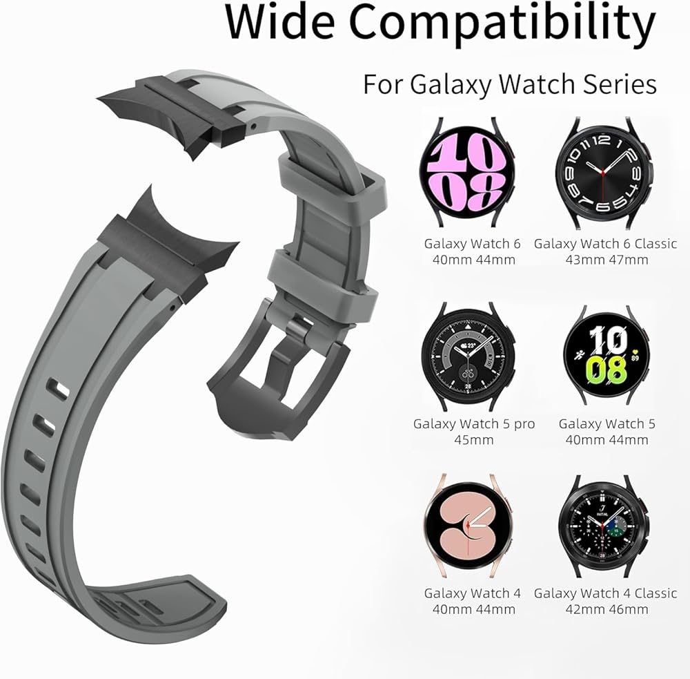 Luxury Style No Gap Silicone Band Compatible with Samsung Galaxy Watch 7/6/5/4 44mm 40mm, Classic 47mm 43mm 46mm 42mm, 5 Pro 45mm One Click Attachment Replacement Wristband