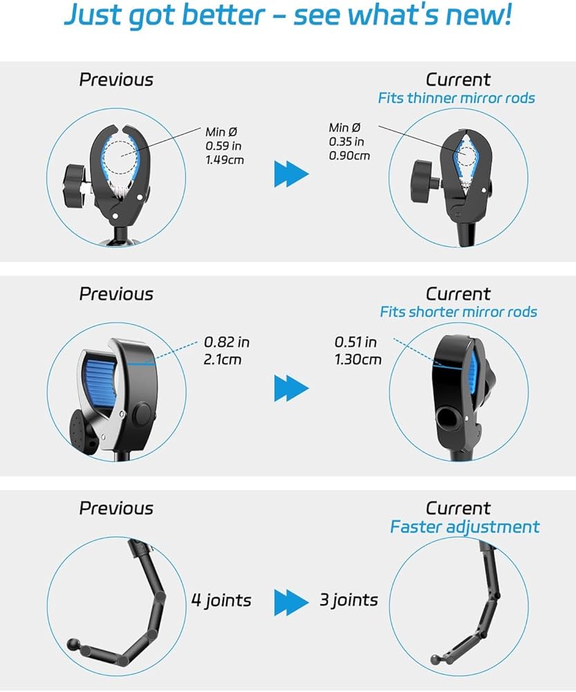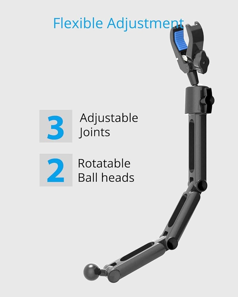 Adjustable Three-Joint System: Featuring three adjustable joints with easy-to-use buttons, combined with a 360-degree rotatable ball head, can multi-angle folding, get eye-level vision and better posture, keep your sight on the road all the time. Enjoy a more comfortable and safer user experience.