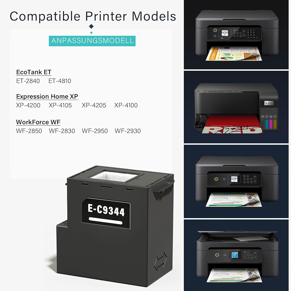 C9344 Maintenance Box for EcoTank ET-2840 ET-4810 XP-4200 WF-2930 XP-4100 XP-4105 XP-4205 WF-2850 WF-2830 WF-2950 ET2840 ET4810 XP4200 WF2930 XP4100 Printers, C12C934461/9344 Ink Maintenance Box