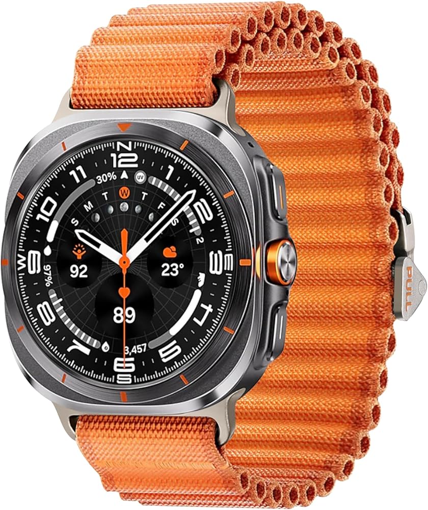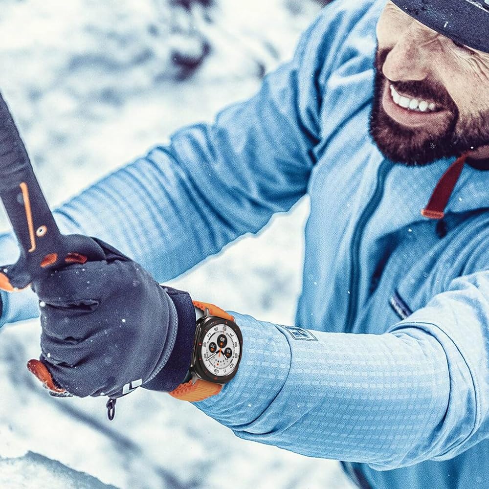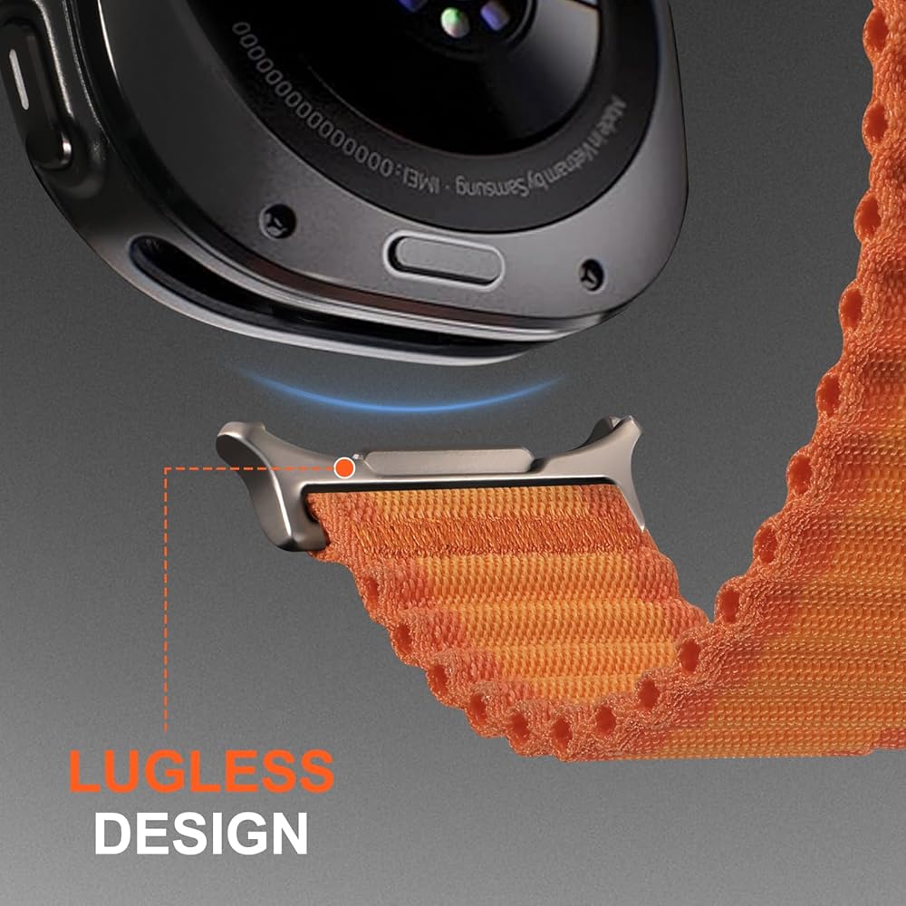 【Safe & Sturdy】The trail band compatible with galaxy watch ultra bands features the metal one click button and triangle latch and hook, making it comfortable to wear on the wrist. Featuring an ear less design that seamlessly blends with the smartwatch's body, ensuring a smooth and snug appearance, even during intense exercise, there's no need to worry