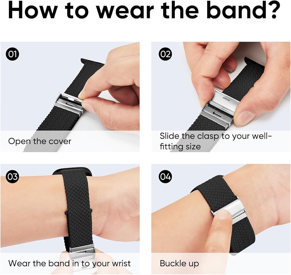 Ultimate Comfortable & Flexible: Experience all-day comfort with our stretchy Apple Watch band. Made from recycled polyamide with a fabric weave, which is skin-friendly, lightweight, washable and breathable. Come to wear this super stretchy Apple Watch bands without constriction. Suitable for 4.9"-8.9" wrist!