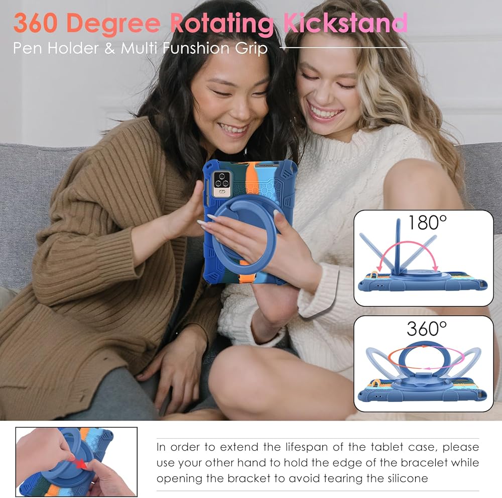 Rotatable Kickstand and Pen Holder: Supports multiple angles, ideal for watching videos, meetings, and travel. Adjustable Hand Ring can makes you hold or use your tablet easily in all directions. Equipped with a pen holder to avoid losing your capacitive pen. Note: The Screen Protector is NOT including in the package