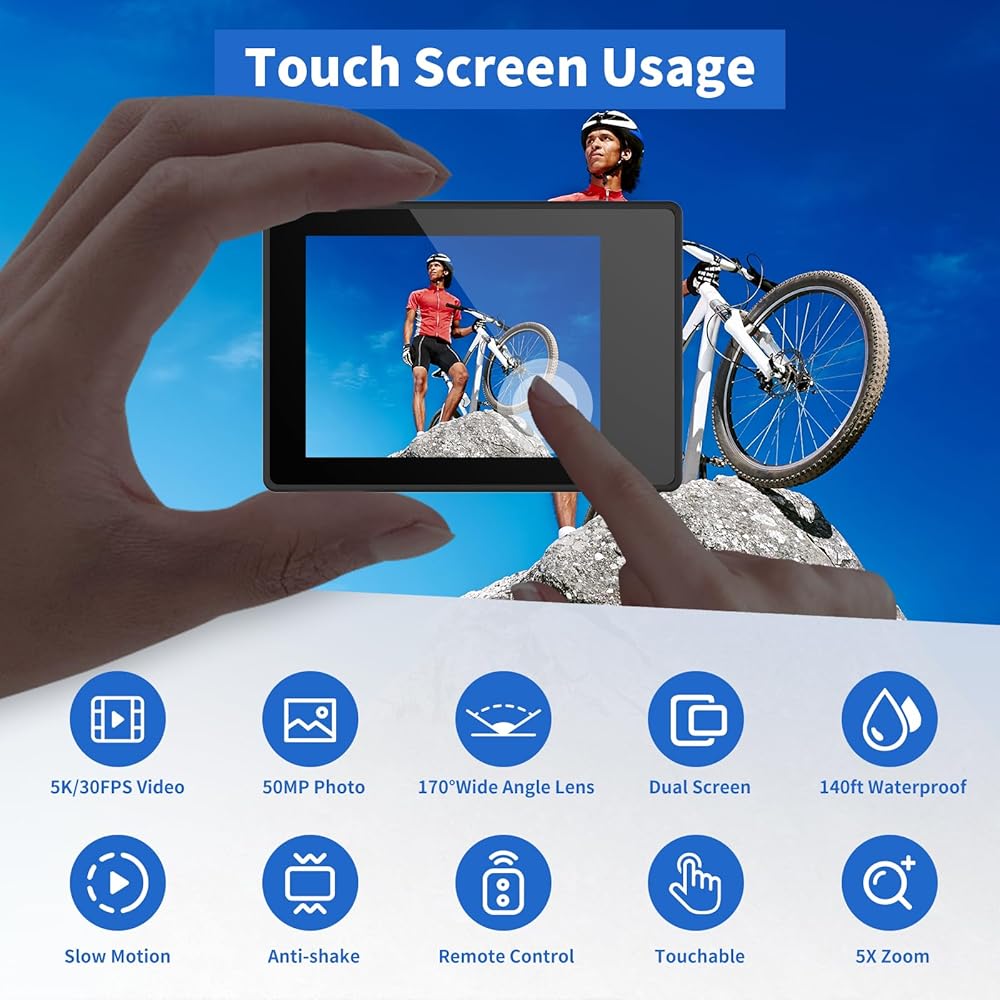 HD Video and Photographs Shooting: Ourlife 6K action camera features 5K/30FPS 4K/30 60FPS 1080P, 2.7K/30FPS and 1080P/30FPS video resolution and 8-50MP photos, Ourlife sports camera enables you to take incredible photos and ultra HD video recording for vlogging , clearly recording the beauty and wonders in life