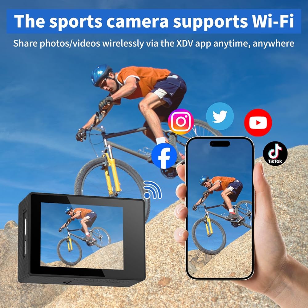 Free App And Built-In Wi-Fi: The waterproof camera is Wi-Fi supported,Wi-Fi signal ranges up to 10 meters.It enables the wireless photo/video sharing via XDV App. Just download the App on your phone or tablet and connect with this action camera
