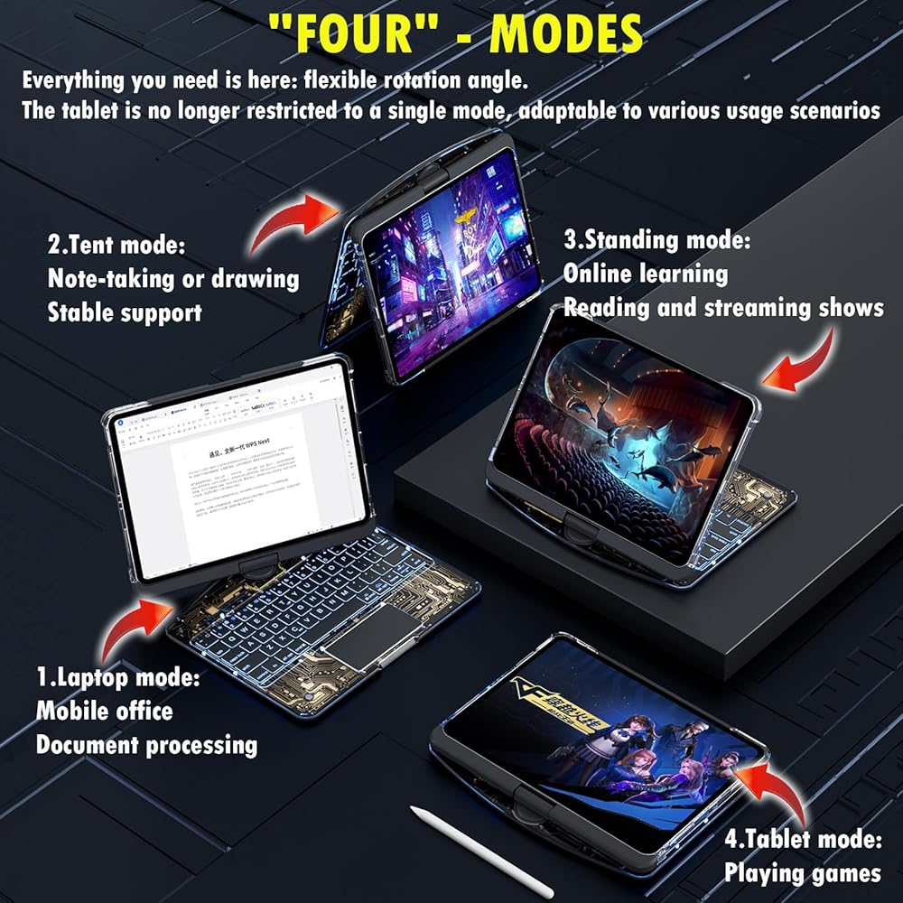 - 360° Rotatable Hinge: Effortlessly adjust viewing angles for typing, sketching, or presenting.
