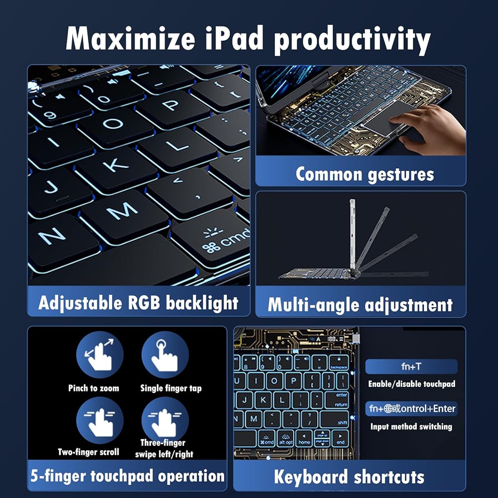 - MAC-Style Multi-Touch Trackpad: Advanced iPadOS gestures like swipe, zoom, and multitasking are supported, ensuring smooth and precise navigation.