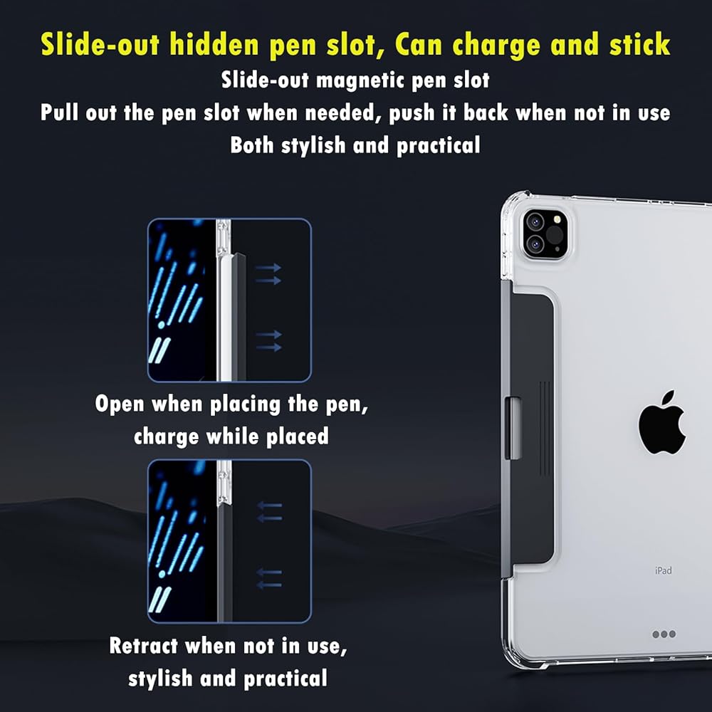 • 【Lightweight Design with Pencil Compatibility】Includes a secure magnetic pencil holder for storage and wireless charging. The lightweight yet robust shell offers dependable protection and enhances portability.