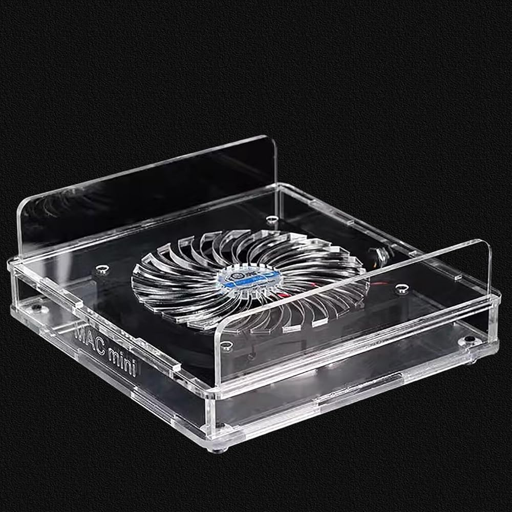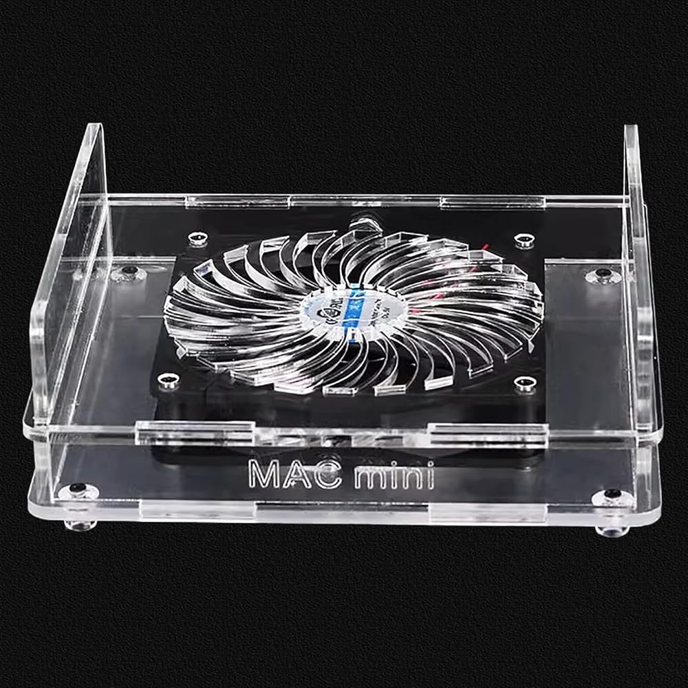 Mac mini Mount,Mini Cooling Fan Design,Super Strong Wind Modification Chassis,Equipped with a 5.5 Inches Silent Fan for Heat Sink,USB Power Supply(Transparent)
