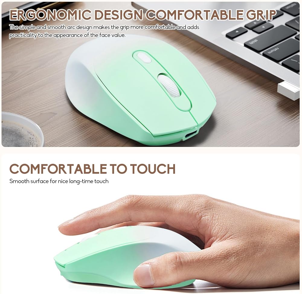 2 Pack Wireless Gradient Color Bluetooth Mouse,Dual Mode Rechargeable Silent Slim Laptop Mouse,Portable(BT5.2+USB Receiver) Computer Mice,for Laptop,Desktop,ipad Tablet,Phone,TV (Gradient Green)