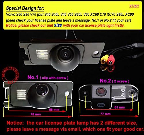 Vehicle Backup License Plate Cameras, LED Night Vision Car Rearview Backup Camera for Volvo S80L /S40L/S80/S40/S60/V60/XC90/XC60/C70/s60L (Clip+Screw Hole Style)