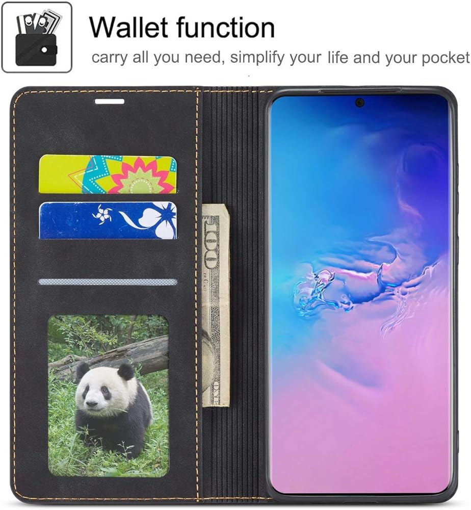 EYZUTAK Premium PU Leather Flip Folio Case for Samsung Galaxy S20, Protective Case with Kickstand Card Slot Magnetic Closure Shockproof Wallet Cover for Samsung Galaxy S20 - Black