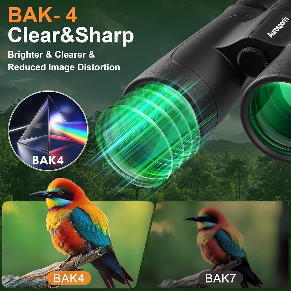 【Durable & Solid & Anti-slip Grip】Our birding binoculars have an unscented rubber armour coating, a non-slip fingerprint construction, and a safe and comfortable grip surface. All of this is thoughtfully designed to make your experience even better. Choose Aurosports waterproof binoculars to bring a special gift for your friend and family, make their vision brighter and life more wonderful!