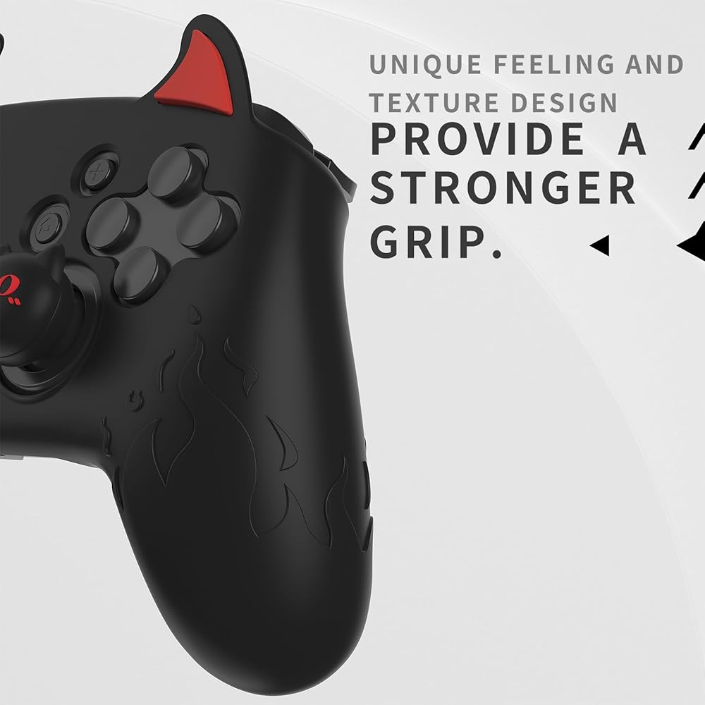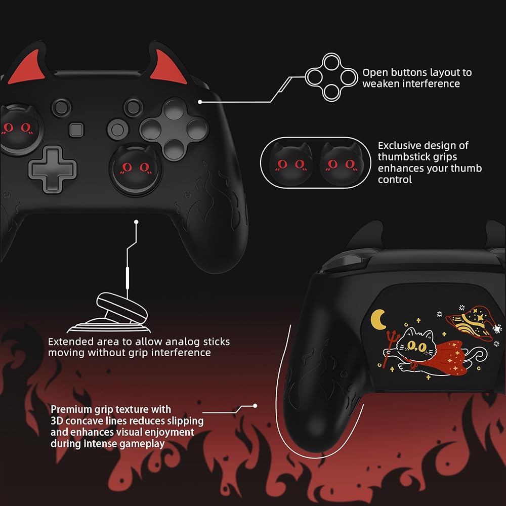 Cute Demon Design: Features demon flame texture on grips and adorable demon ears near LB/RB buttons. Includes 2 cute demon cat air-cushioned joystick caps and 2 matching back stickers for a personalized look