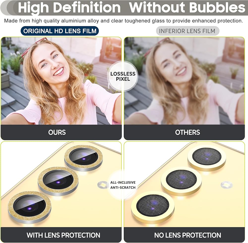 【Lens Protection】The lens protector is made of high quality 9H hardness tempered glass, which is more wear-resistant and stronger than ordinary materials. Protect your lens from scratches and bumps. The lens protector features advanced oleophobic coating. It can effectively prevent fingerprints, dust, oil and water in daily life and keep lens clean all the time.