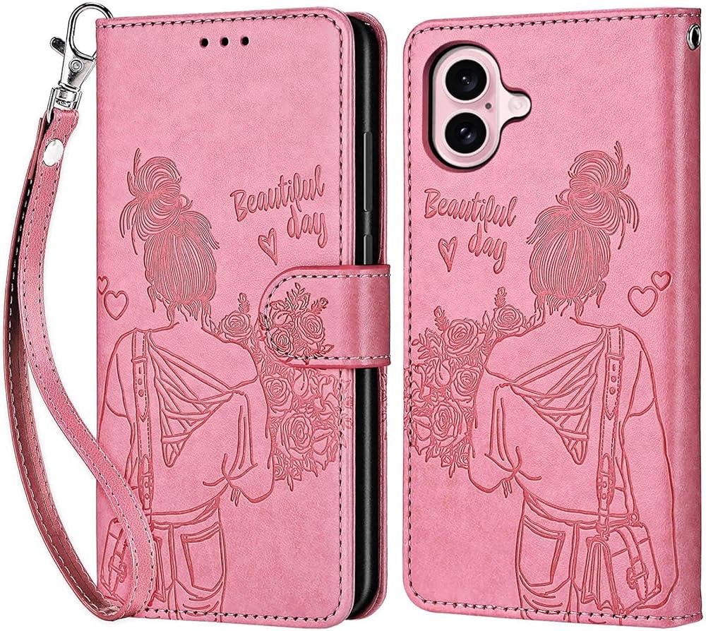 For iPhone 16 Wallet Case , Embossed , Wrist Strap, Stylish Pattern Designed Wallet Case; Please check the phone model carefully before purchasing