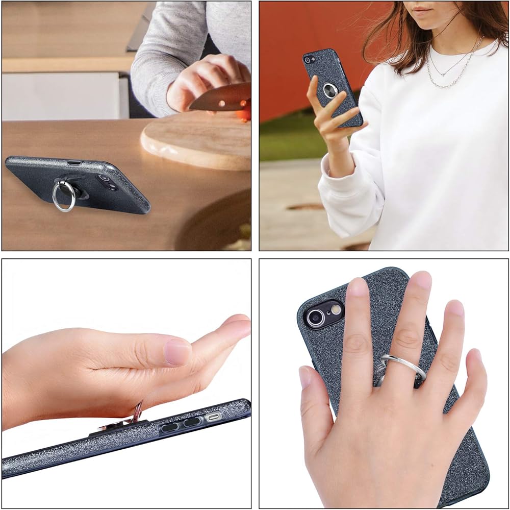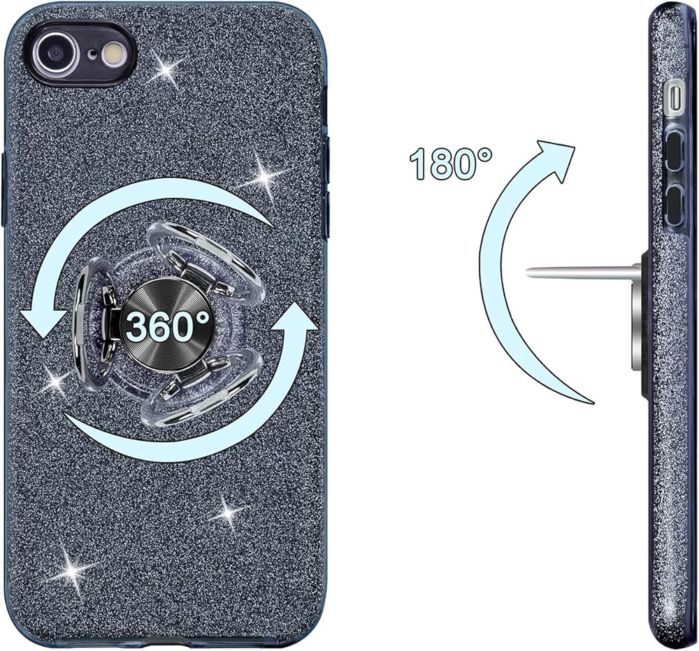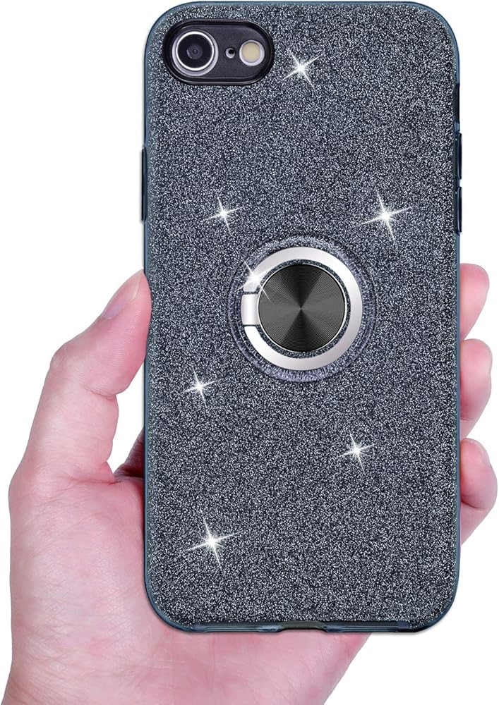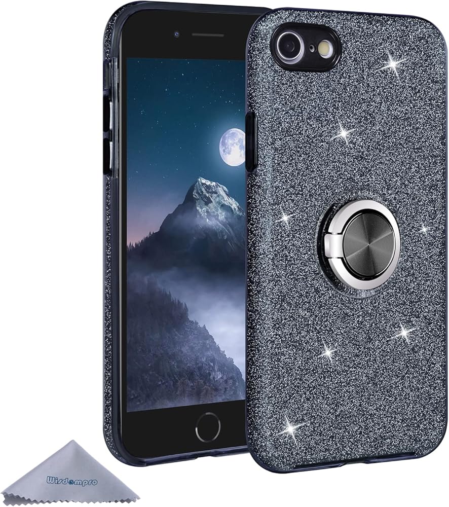 Wisdompro Case for iPhone SE 2022/2020, for iPhone 8, for iPhone 7, Cute Glitter Bling Sparkly Case with Ring Stand, Women Girls Protective Phone Case Cover for iPhone SE 3rd Gen /2nd Gen/8/7 - Black