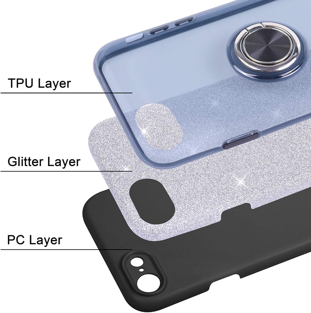 3 in 1 Constructure: Outer shell (soft TPU) + middle layer (glitter film) + inner shell (hard PC) to protect your phone from drops, shocks or scratches. Glitter film embedded into the middle layer won't fade or flake off.