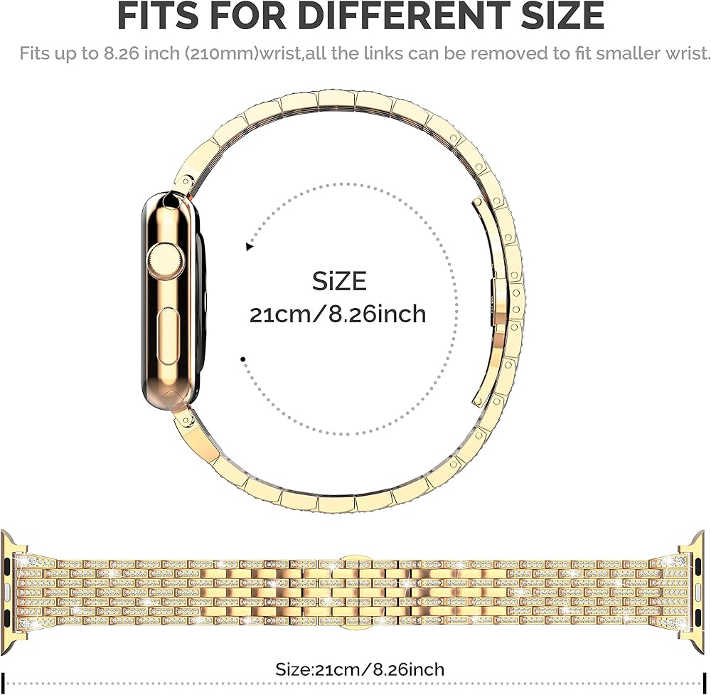 Wearlizer Compatible Apple Watch Band Women 38/40/41/42/44/45/49mm Crystal Rhinestone Diamond Band Luxury Stainless Steel Metal Bracelet Strap for iWatch Series 11 10 9 8 7 6 5 4 3 SE/Ultra 3 2 1