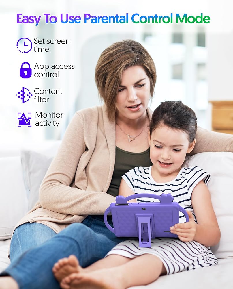 WORRY-FREE SERVICE - We offer comprehensive support to put your mind at ease. Our warranty lasts for 1 year. If you have any questions, please don't hesitate to contact us. We will respond promptly and assist you in resolving any issues.Package Contents: 1 x Kids tablets, 1 x Protective Silicone Case,1 x USB-C Charger Kit,1 x screen protector,1 x user manual