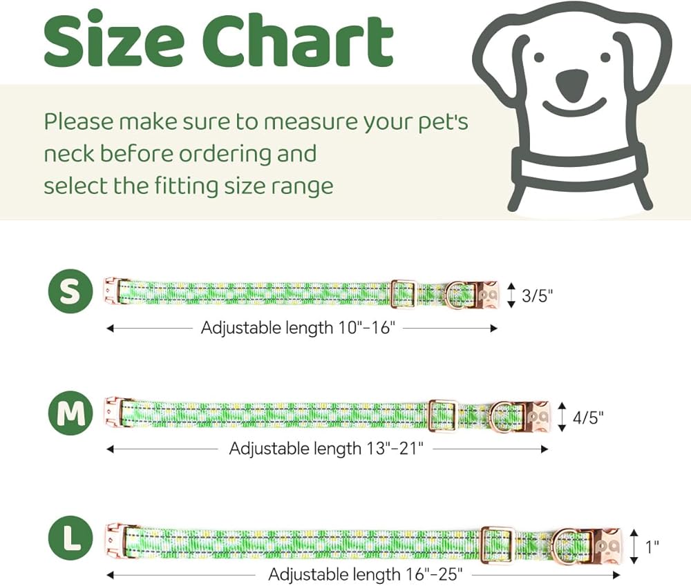 Adjustable Length: Non-slip adjustable loop can easily adjust the size, Please take measurement of your dog's neck circumference before order placed. Small/S: width 0.6”, adjustable 9.8”-15.7”. Medium/M: width 0.8”, adjustable 12.9”-21.6”. Large/L: width 1”, adjustable 15.7-25.6 inch. Ideal personalized dog collars for small medium large boys & girls.
