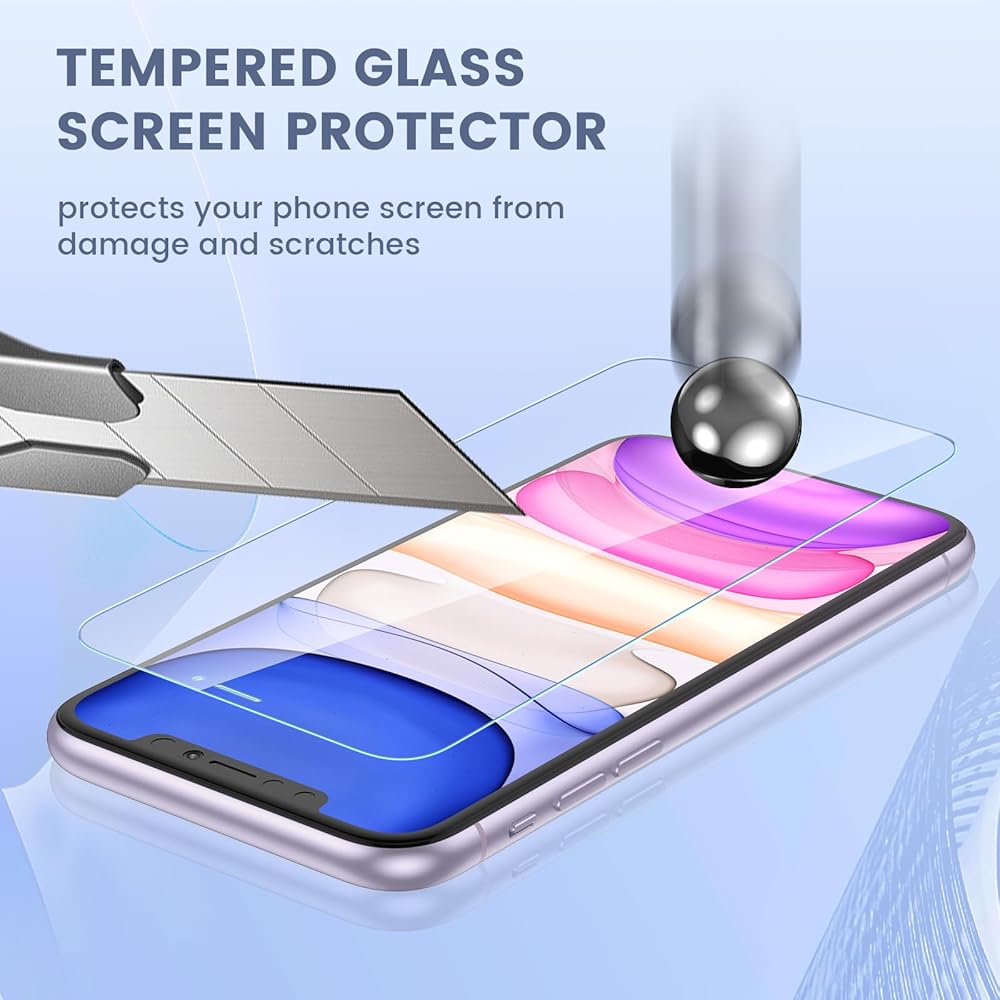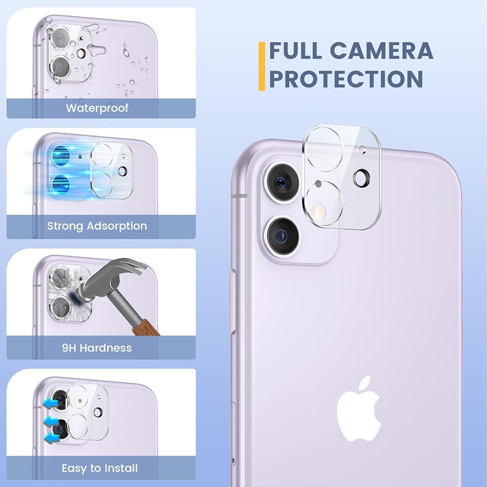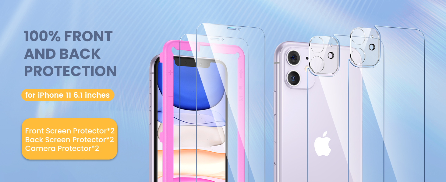 Compatibility: Super High-Definition Tempered Glass 2 Pack Front and Back Screen Protector and 2 Pack Camera Lens Protector only compatible for iPhone 11 6.1 inch.