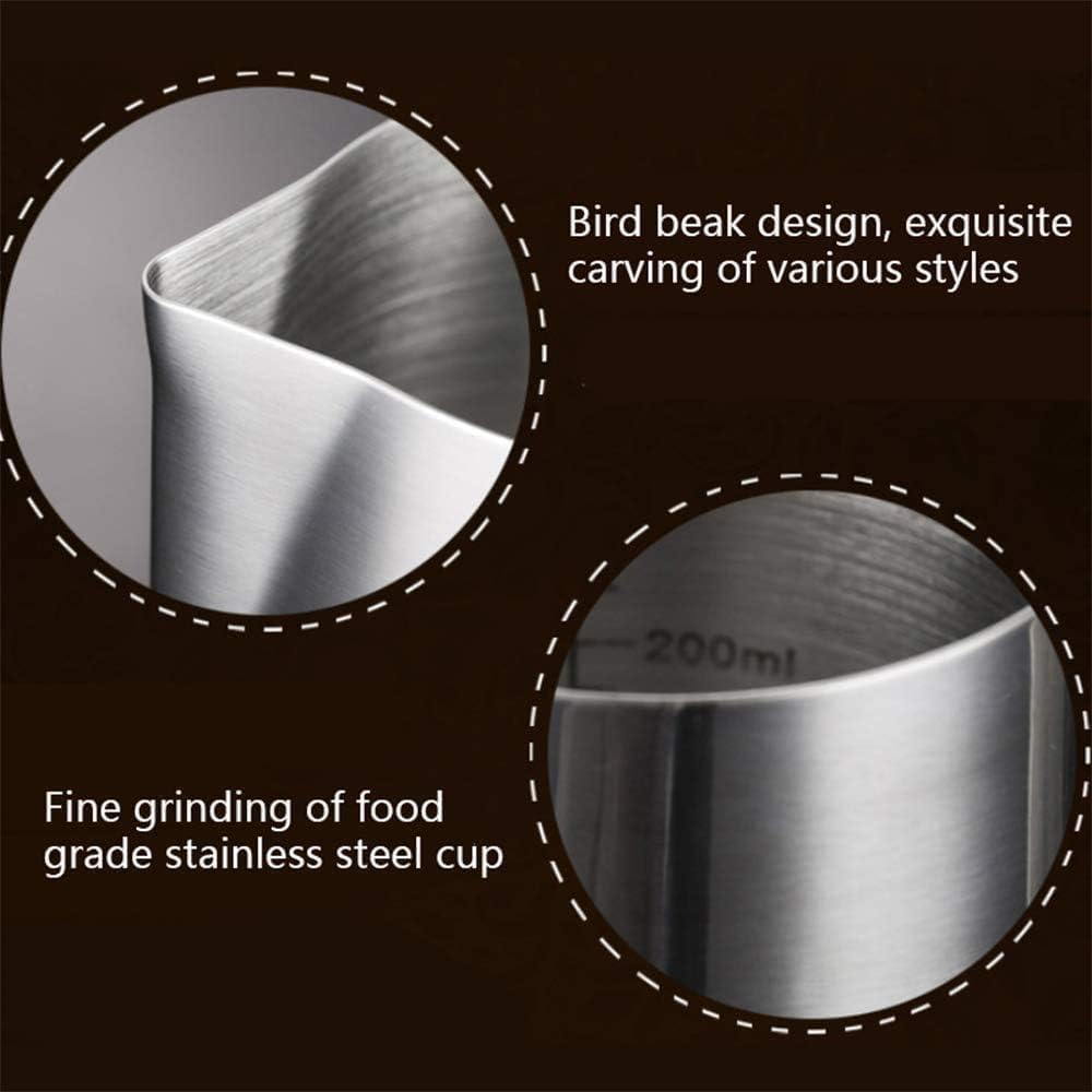 CLEAR Measuring Scale: The clear scale measurement on the inside of the milk frothing jug allows you to pour out exactly the milk you need. And you can also use it to measure any liquid such as water,, cream,cooking milk,juice, batter mixture, smoothies, etc.