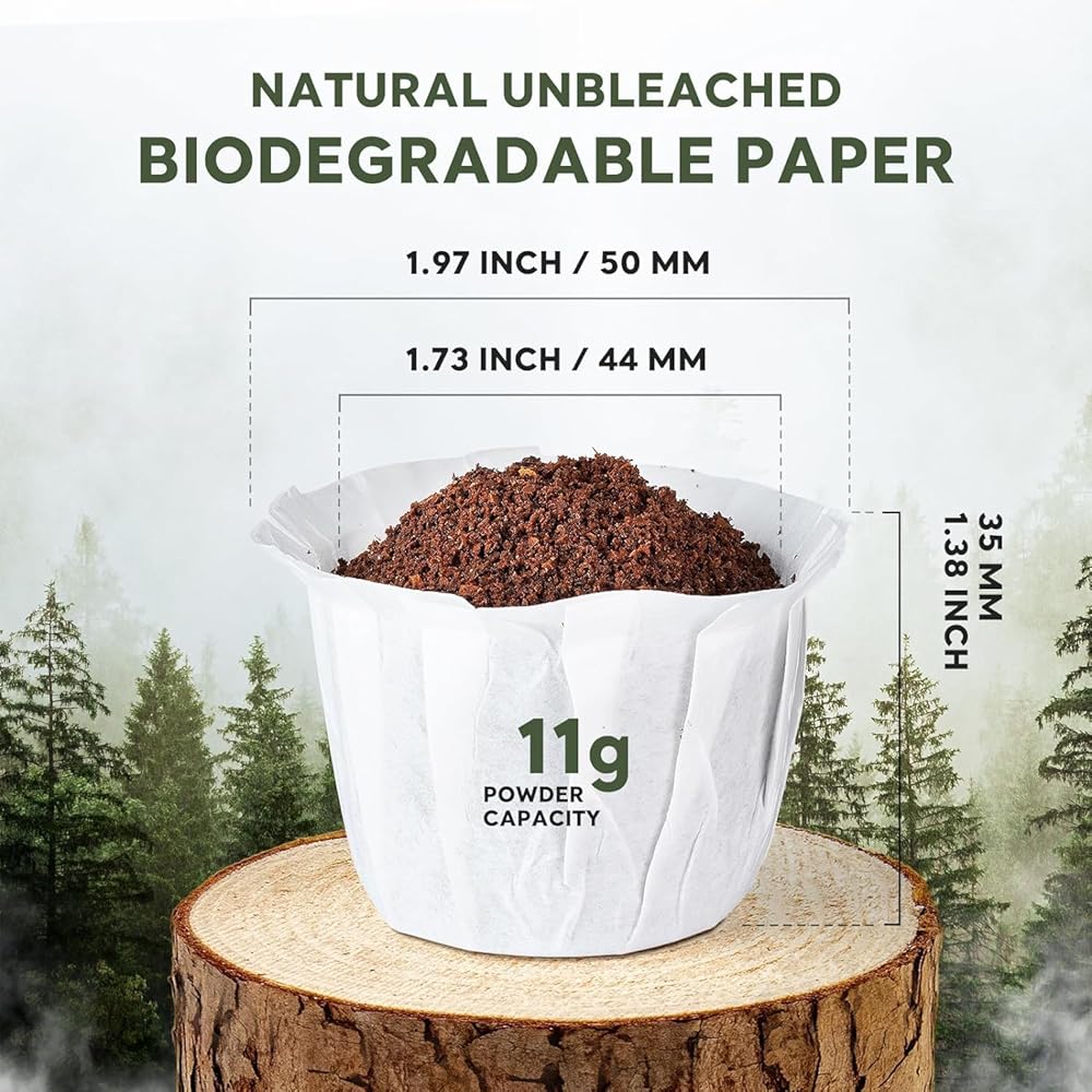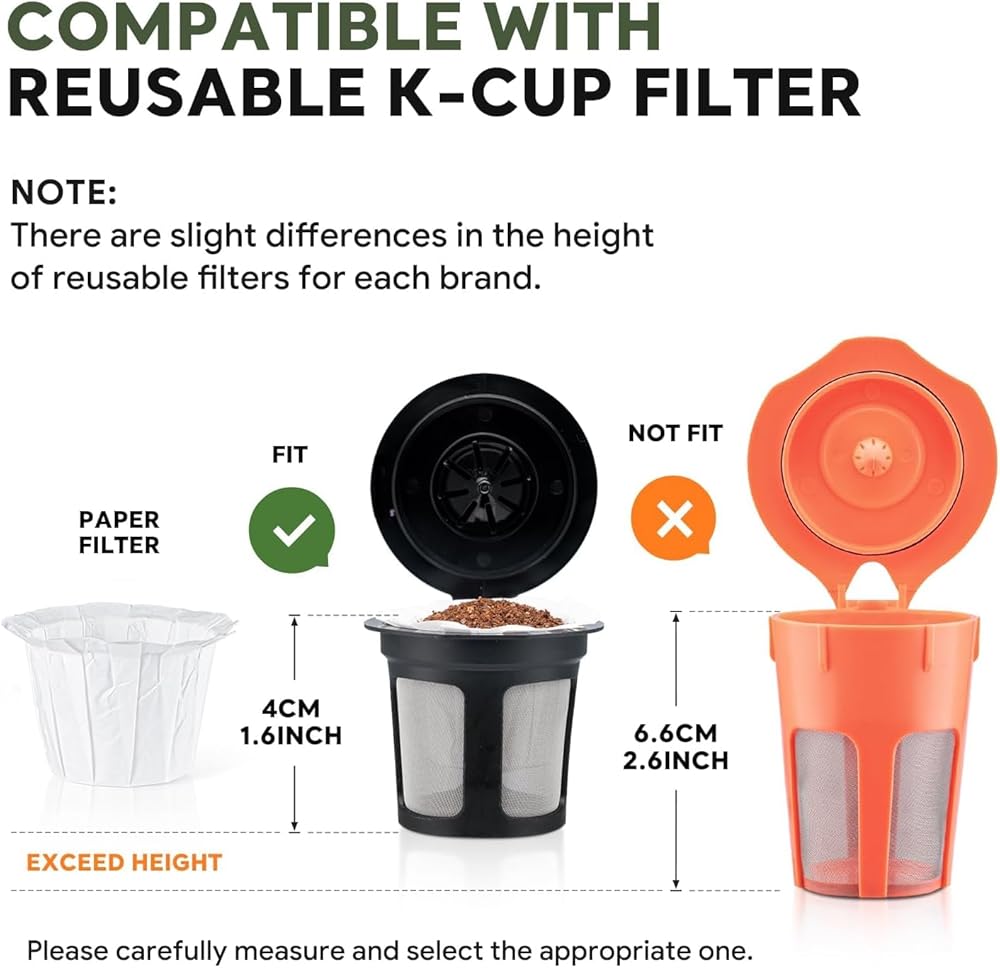Disposable Paper Coffee Filters Fits Into Most K/cups Paper Filters: The disposable paper filters for single-serve reusable k cup pods fit most Ke-urig Brewers, compatible with most 1.0 and 2.0 Single Kcup coffee pods, please noted that this is the short type not the tall type. Natural Disposable Paper Coffee Filters - Premium Quality: The coffee paper filter is made of natural and biodegradable paper material, no chemical residue, no harm to body. It is not easy to tears out under high-pressure hot water. Disposable K/cup Filters Paper - Easy to Use: K/cup coffee paper filters help you to make a nice cup of coffee and so easily to clean up. It can be taken out directly with the coffee grounds, cleanup is a breeze, saving time. No dripping, no mess and no leaking. Single Serve Coffee Filters Disposable Paper Filters - Make A Cup Of Nice Coffee: 100% Biodegradable filter paper, use your own fresh coffee, serves you the original coffee flavor. Disposable Ke urig filter paper, save money and reduce k/cup waste, help you to enjoy your favorite coffee, excellent for your personal enjoyment. Disposable Coffee Filters Paper For kcups - Nice Thickness: Disposable coffee filters for ke-urig single cup neither too thin to be split up or leak, nor too thick to make the coffee weak. Ideal thickness for better flow through.