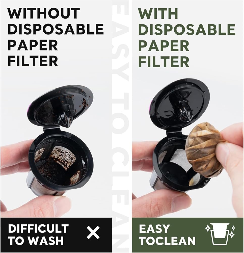 Disposable K/cup Filters Paper - Easy to Use: K/cup coffee paper filters help you to make a nice cup of coffee and so easily to clean up. It can be taken out directly with the coffee grounds, cleanup is a breeze, saving time. No dripping, no mess and no leaking.