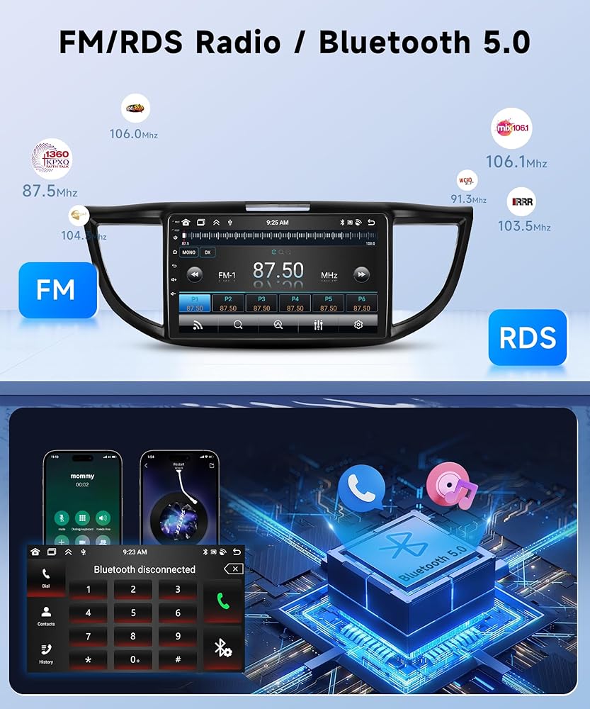 32-band DSP, Bluetooth 5.0: The honda crv carplay equipped with a Digital Signal Processor (DSP), offers a 32-band EQ for precise sound adjustment, noise reduction, and enhanced bass for rich audio. The upgraded Bluetooth 5.0 ensures fast, stable connections for seamless music and dependable hands-free calls