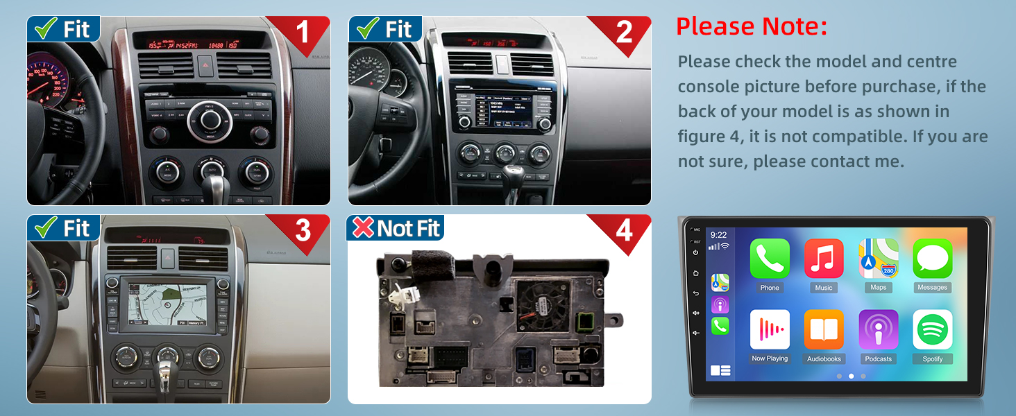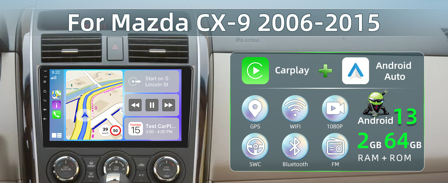 【Applicable Models】This upgraded replacement dash kit is for Mazda CX-9 CX9 CX 9 2006 2007 2008 2009 2010 2011 2012 2013 2014 2015. Audio comes with on-board host, harness cable and frame panel. Supports most stock features - steering wheel controls, stock USB features, etc. Please check the power cable port on the detail page to make sure it matches your original car before purchasing.