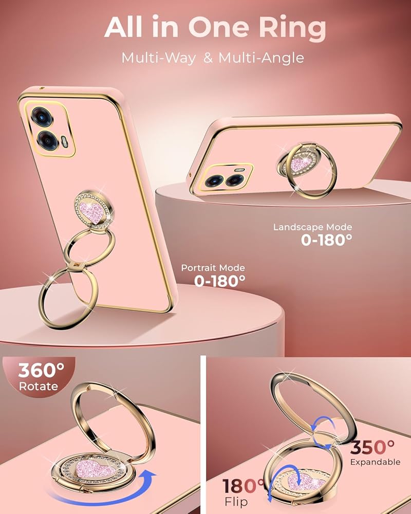 💖【2-Way 360° Ring Stand】 This case for Moto G Sylus 5G 2024 features a heart-shaped ring that can fold 180° and rotate 360°. This dual-ring stand supports both portrait and landscape mode with multiple adjustable angles. It's sturdy and provides convenience when reading, browsing, watching movies, or Facetiming.
