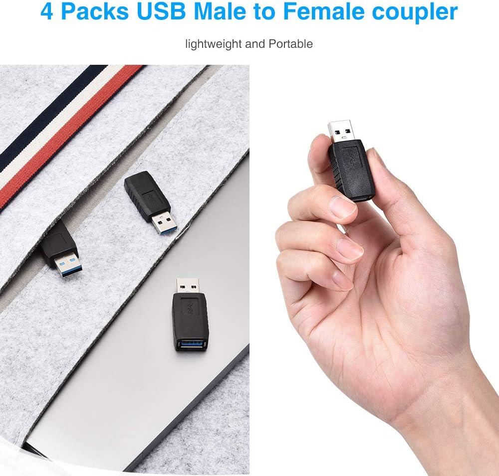 ELUTENG USB Coupler Male to Female 4Packs USB 3.0 Type A Adapter Superspeed 5Gbps USB Port Extension Connector Bridge Compatible with Laptop Computer Hard Drive Printer Camera