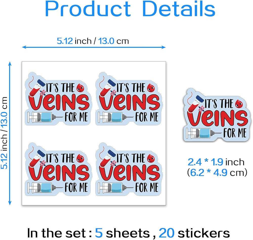 YAZMEEN 20 Pcs Funny Syringe Nurse Stickers 2.5'' It's The Veins for Me Stickers Medical Decals for Water Bottle Notebook Phone Appreciation Gifts for Phlebotomist Phlebotomy Nurse Doctor Assistant