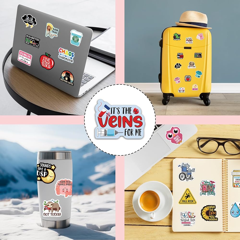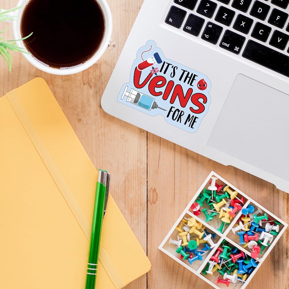 Unique Design: Our nurse stickers are designed with funny arts "It's The Veins for Me". The vivid color pattern and funny saying are imprinted on the high-quality paper, inspirational and meaningful, the nursing stickers are sweet and thoughtful gifts for nurses, doctors, teacher, assistant, student and more.