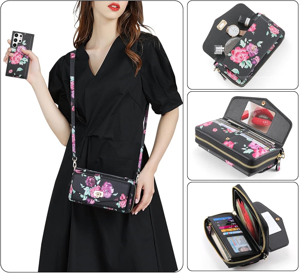 This case is compatible with Samsung Galaxy S23 Ultra,please check your cell phone model before buying.Zipper pouch with adjustable crossbody chain shoulder strap and magnetic detachable protective back Cover.Make it 4 ways carrying wallet: cell phone crossbody bag/cell phone shoulder purse/cell phone clutch/cell phone wristlet wallet.