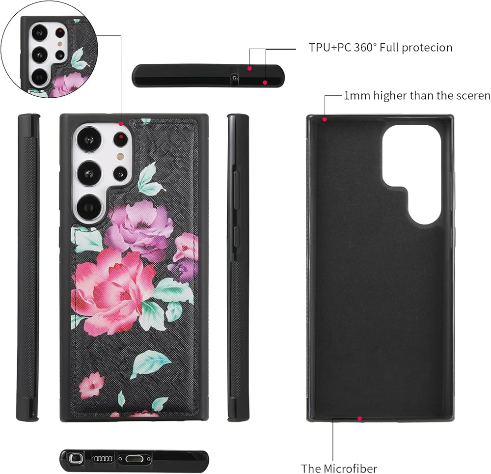 compatible with Samsung Galaxy S23 Ultra leather wallet case:Made of soft Faux leather,comfortable touching feelings.Zipper closure and snap button to make sure all thing stay inside securely.