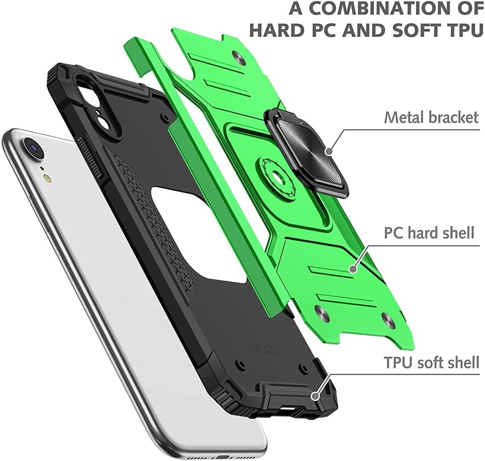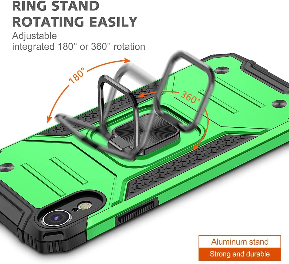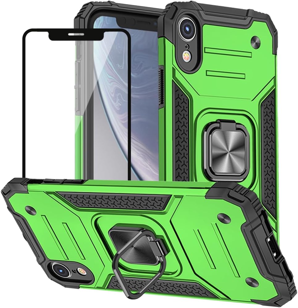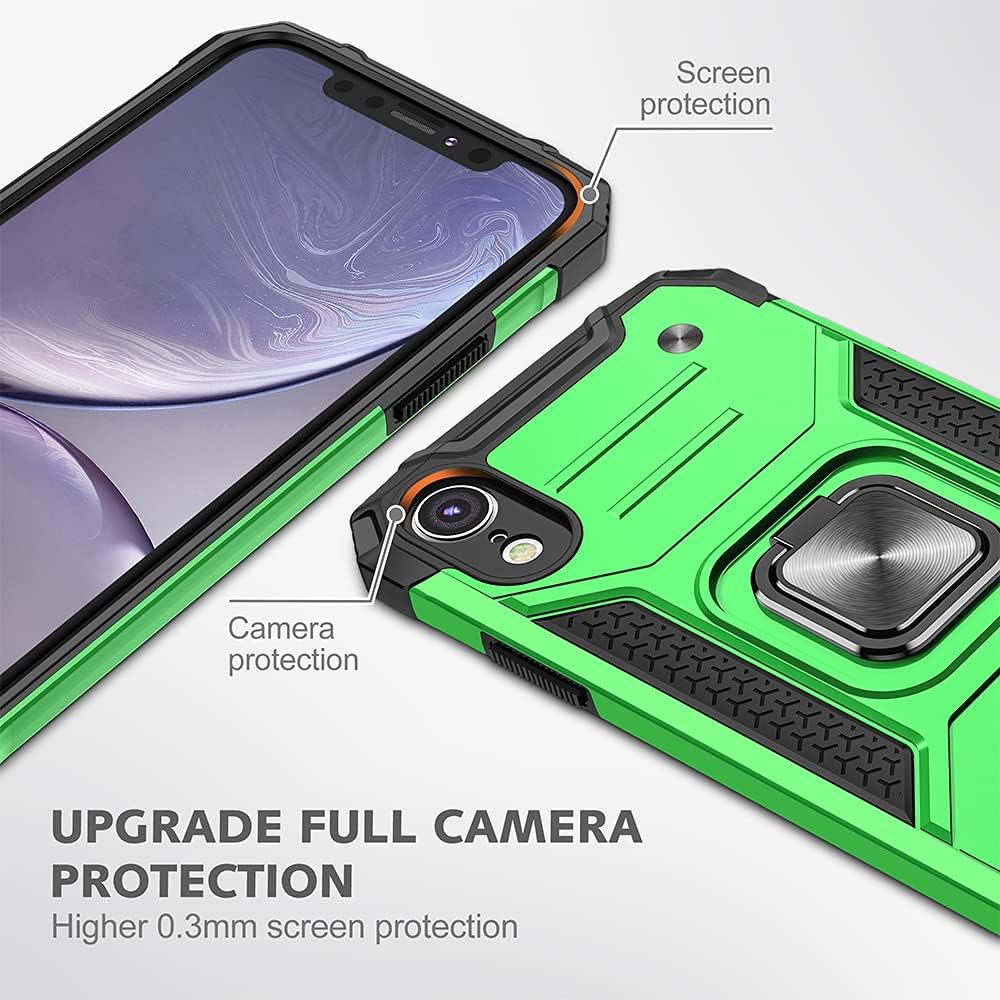 HNHYGETE for iPhone XR Phone Case with Screen Protector: (Heavy Duty) Military Grade 360° Rotatable Kickstand Shockproof Protective Cases for iPhone XR (Green)
