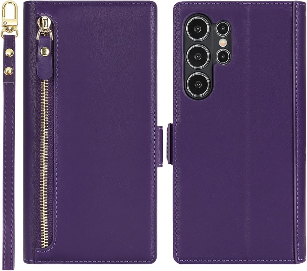 [Card Holder Case]: 1 zipper wallet, 4 credit card slots, you can store ID card, credit card, cash, driver's license and precious photos without having to take your wallet with you.Magnetic buttons make the back case open and close securely, which will not get your cards or cash drop out.Precise cut out for all features, speaker, charging port and camera, no need to remove it when using it.