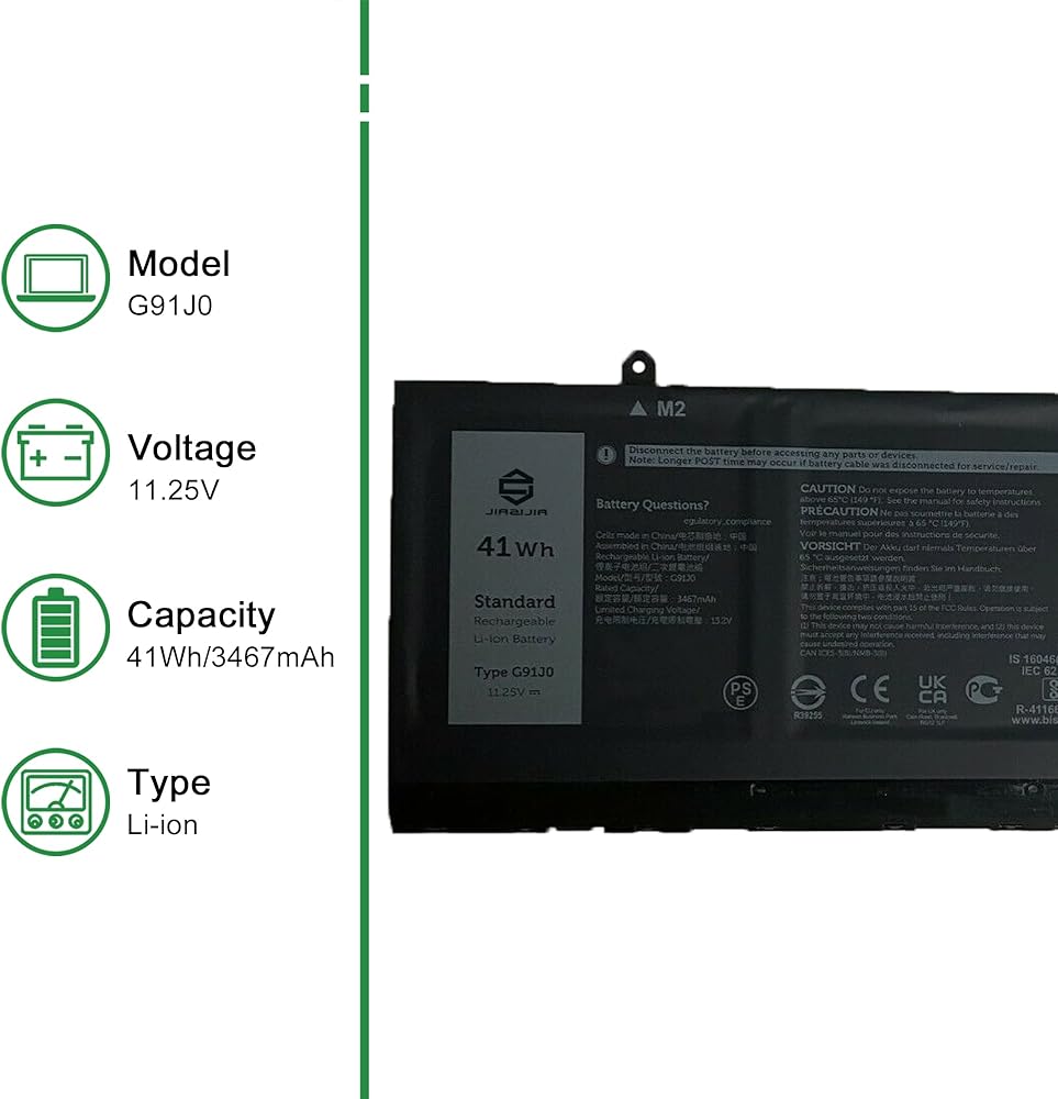 • Model: G91J0 // Voltage: 11.25V // Capacity: 41Wh 3467mAh // Color: Black // Type: Plug & Play Li-ion Battery.