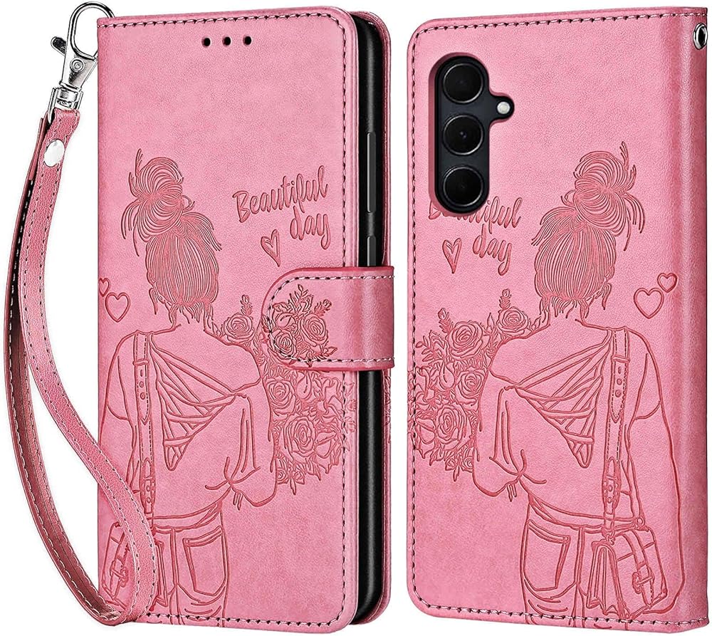 for Samsung Galaxy A35 5G Wallet case, Flip Folio Cover with Stand Feature for Women Men, PU Leather Phone Case Fit for Samsung Galaxy A35 5G [Pink-Girl]