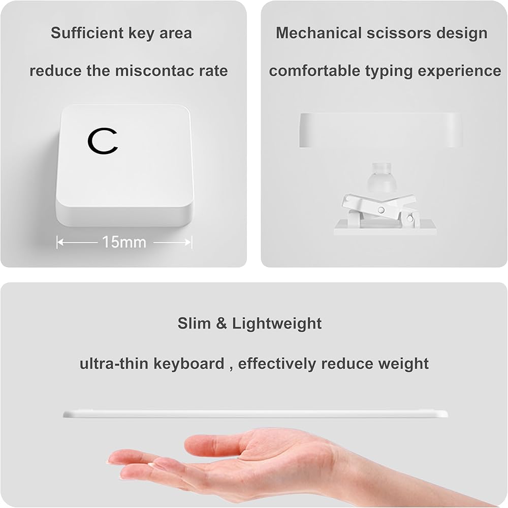 💫【Long Life Battery&Rechargeable Slim Bluetooth Wireless Keyboard&Instant pairing】- With its powerful 500mAh battery,2-3 hours full charge, work for more than 80 hours, stand by for 130 days. It even enters into sleep mode automatically if not in use for 15 minutes. Just Press any key to wake up.Mechanical scissors keyboard, quick rebound, press smoothly.