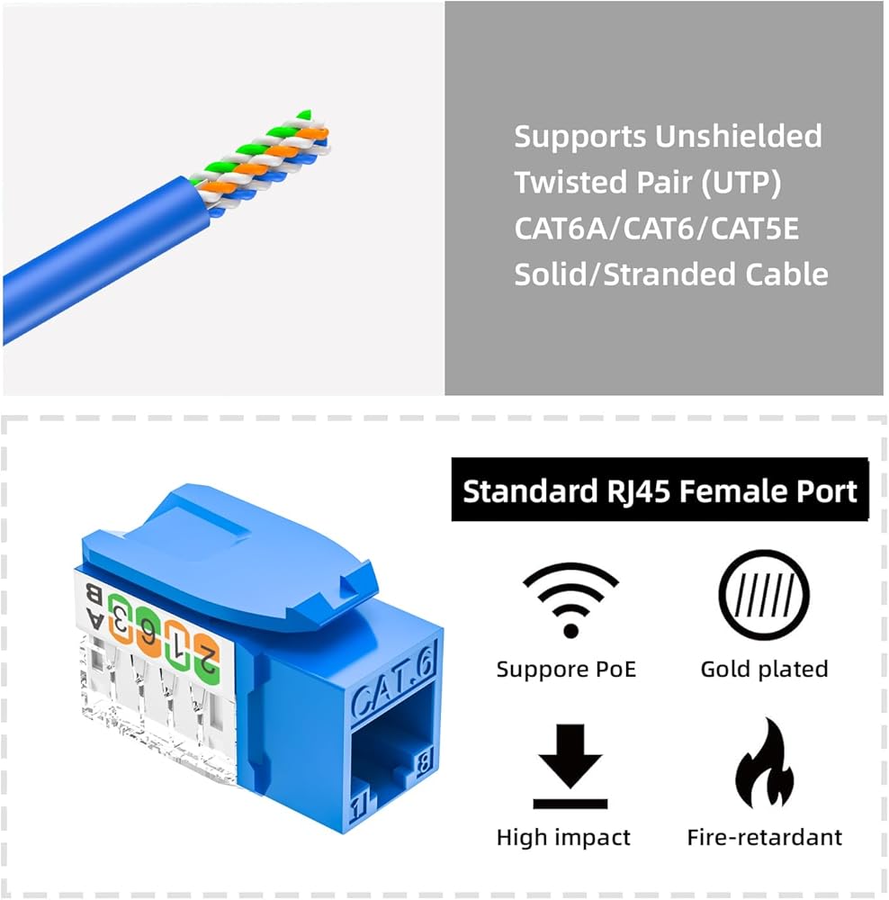 Package Contents: You will receive a set of 25-pack RJ45 Cat6 UTP Keystone Jacks; We provide 24-hour customer service and 18 months warranty