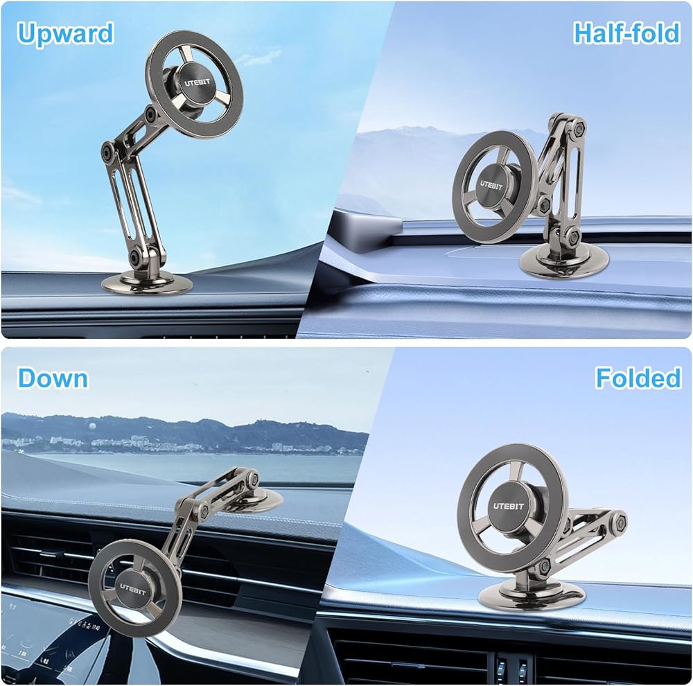 UTEBIT Universal 360° Pro Magnetic Car Phone Holder, Alloy Folding Magnetic Cell Phone Holder for Car, Strong Suction & Adjustable Phone Mount, Support for iPhone and Android All Mobile Phones, Black