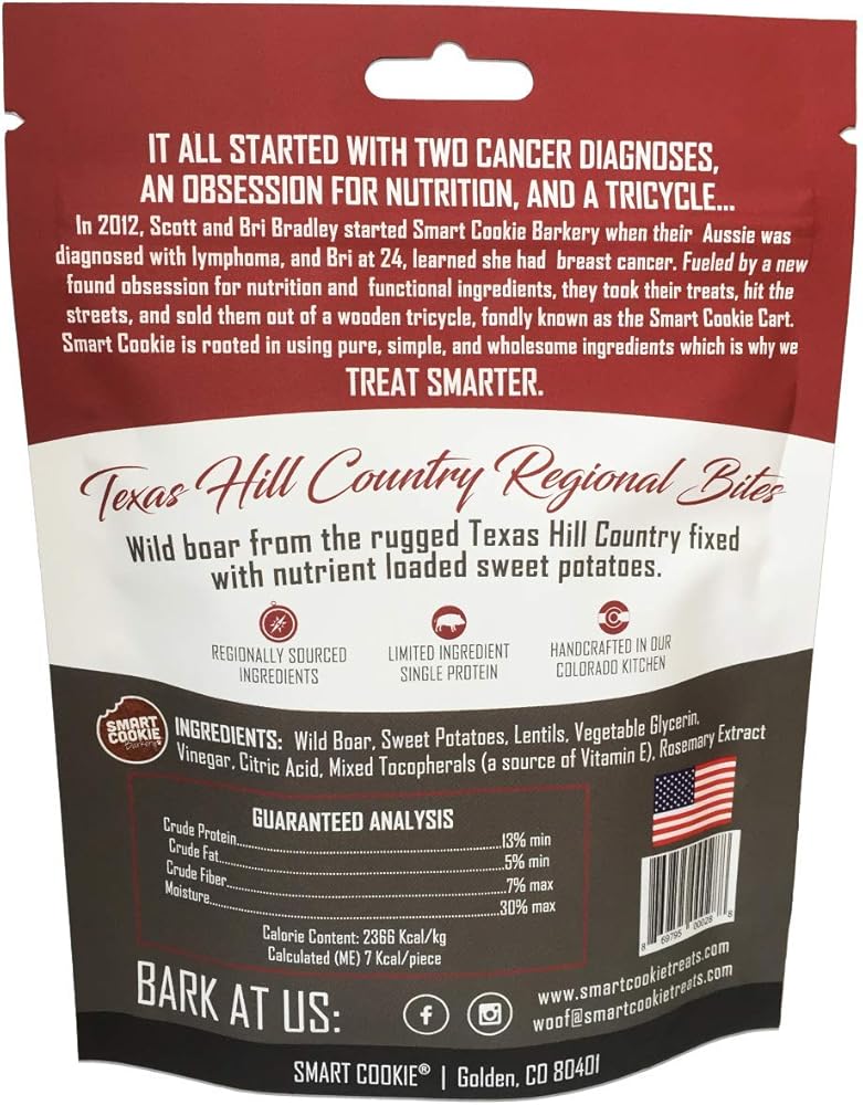 MADE IN THE USA: At Smart Cookie Barkery we love dogs! All of our treats are handcrafted in small batches and made with real, healthy and functional ingredients hand picked from only the best farms and ranches; No fillers, nothing weird, just simple, healthy dog treats