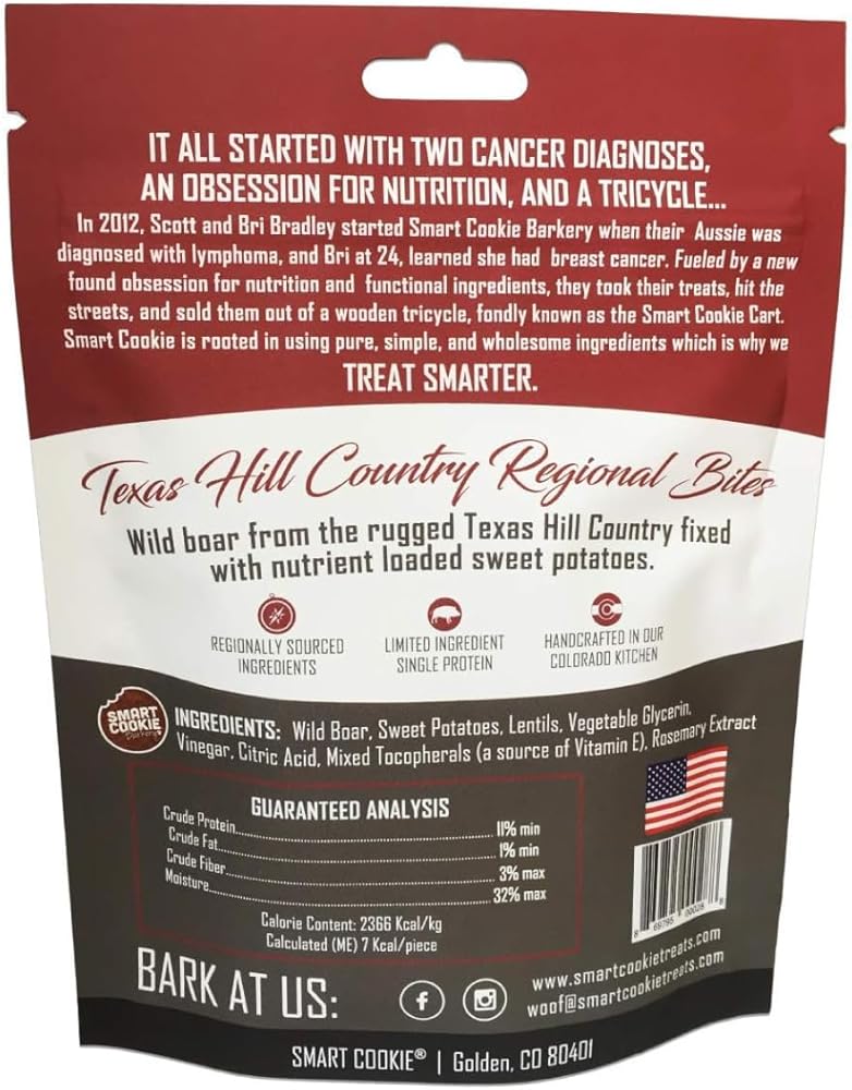 Smart Cookie All Natural Dog Treats - Wild Boar & Sweet Potato - Training Treats for Dogs with Allergies, Sensitive Stomachs - Soft Dog Treats, Chewy, Grain Free, Human-Grade, Made in USA - 5oz Bag